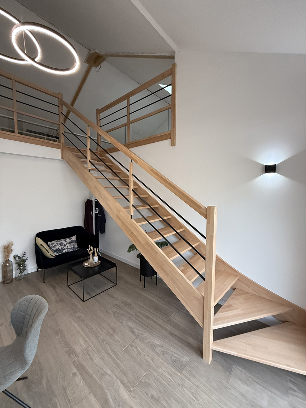 Création d’un escalier et rampe en bois sur mesure.